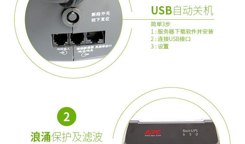 APC BK650-CH不间断UPS电源适用于UPS办公及家庭计算机电源保护。