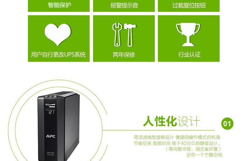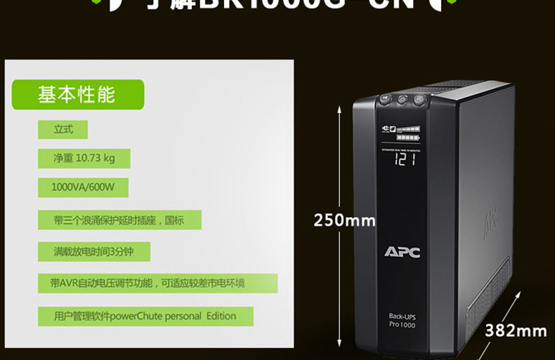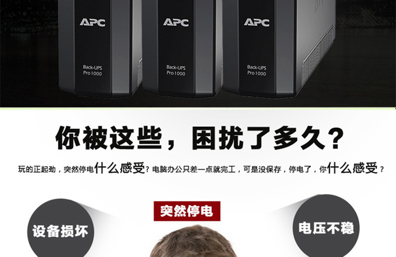 APC BR1000G-CH不间断UPS电源适用于UPS办公及家庭计算机电源保护。