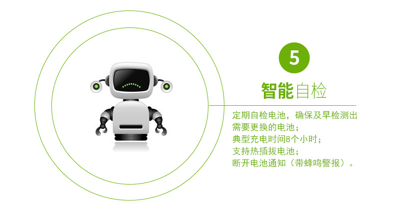 自动自检:定期自检电池,确保及早检测出需要更换的电池。