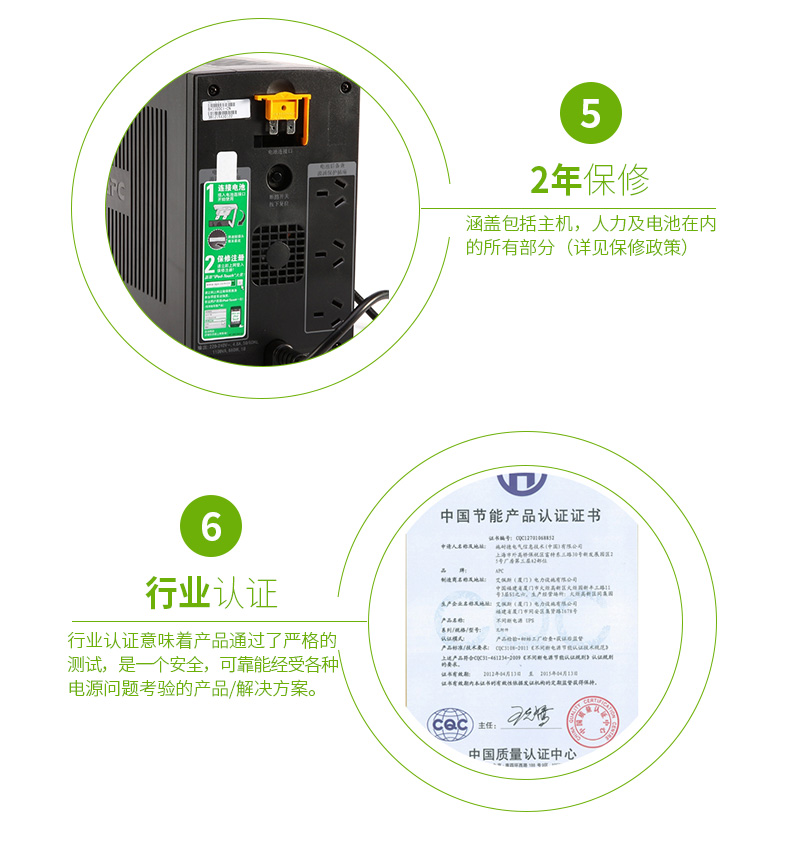 | 更换电池 | APCRBC113 | 预期电池寿命(年) | 3 - 5 |