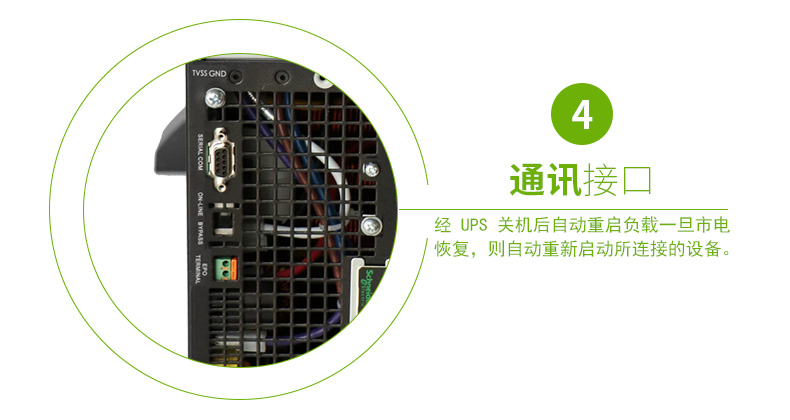 经 UPS 关机后自动重启负载:一旦市电恢复,则自动重新启动所连接的设备。