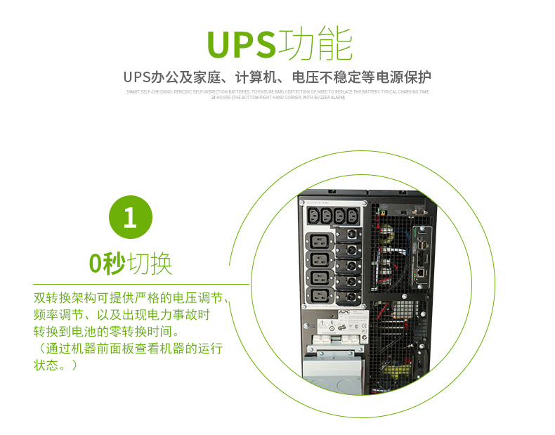 持续保护设备和数据:网络级电源调节功能可防止浪涌的危害和破坏性的噪音。双转换架构可提供严格的电压调节、频率调节、以及出现电力事故时转换到电池的零转换时间。