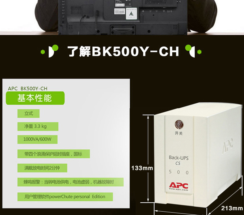 APC BK500Y-CH不间断UPS电源适用于UPS办公及家庭计算机电源保护。