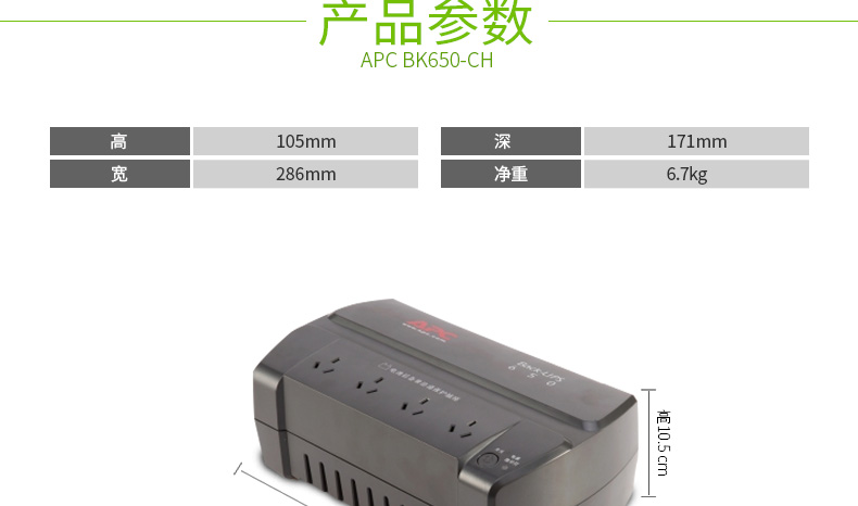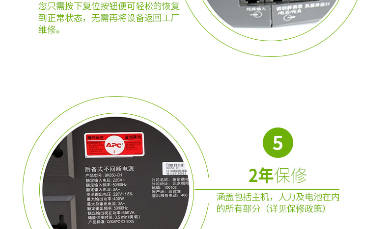 APC BK650-CH不间断UPS电源适用于UPS办公及家庭计算机电源保护。