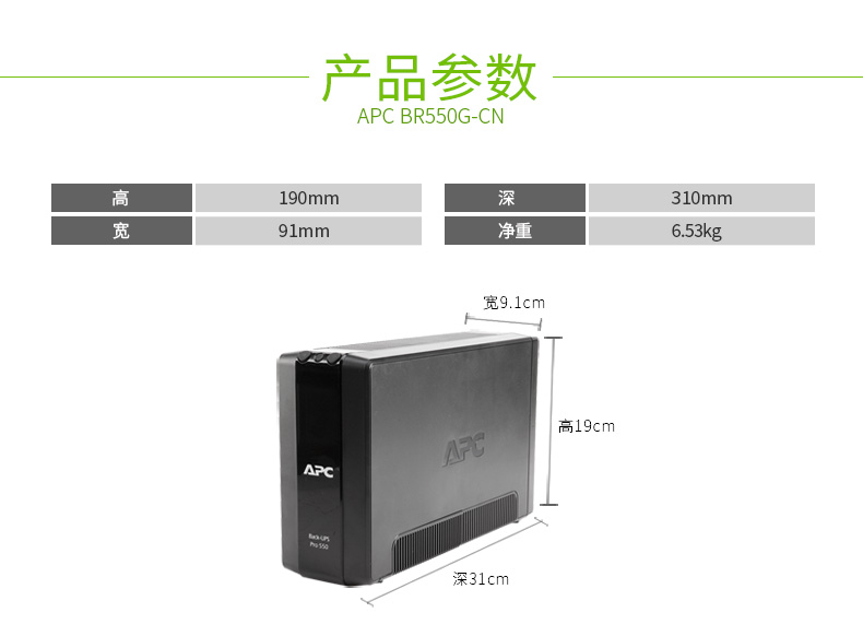 | 更换电池 | APCRBC110 | 预期电池寿命(年) | 3 - 5 |