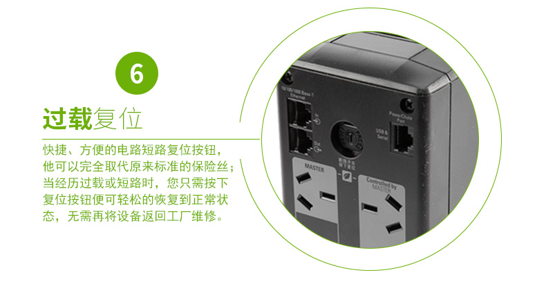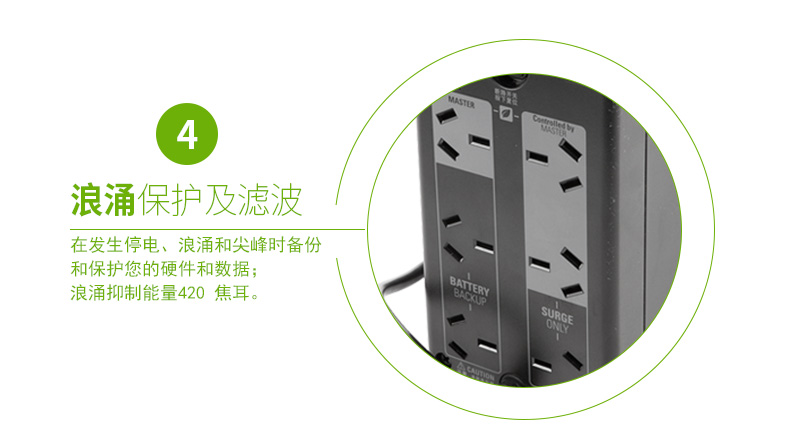 电池保护和电涌插座:为需要UPS备用电池的连接设备储备电源容量和运行时间,同时为太重要的设备仅提供浪涌保护。