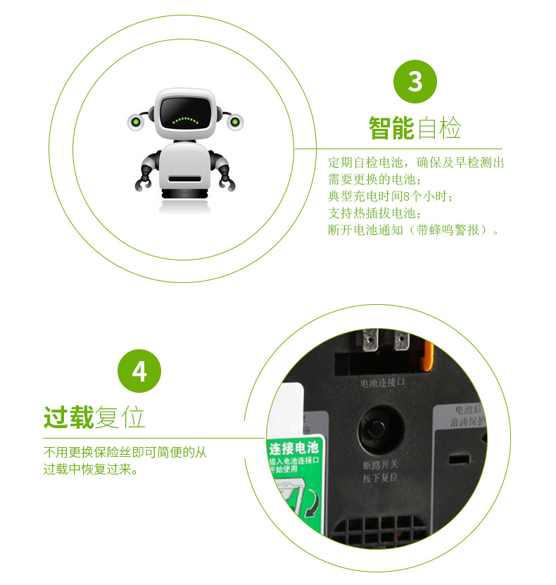 自动自检:定期自检电池,确保及早检测出需要更换的电池。