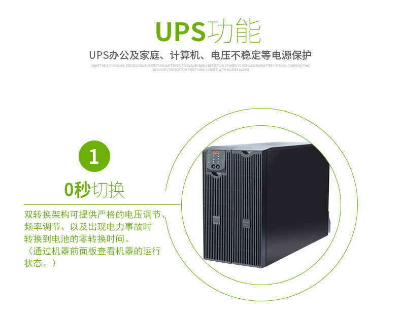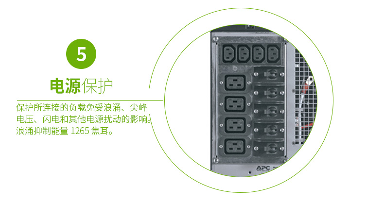 持续保护设备和数据:网络级电源调节功能可防止浪涌的危害和破坏性的噪音。双转换架构可提供严格的电压调节、频率调节、以及出现电力事故时转换到电池的零转换时间。