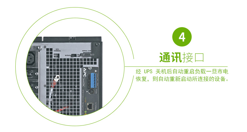经 UPS 关机后自动重启负载:一旦市电恢复,则自动重新启动所连接的设备。