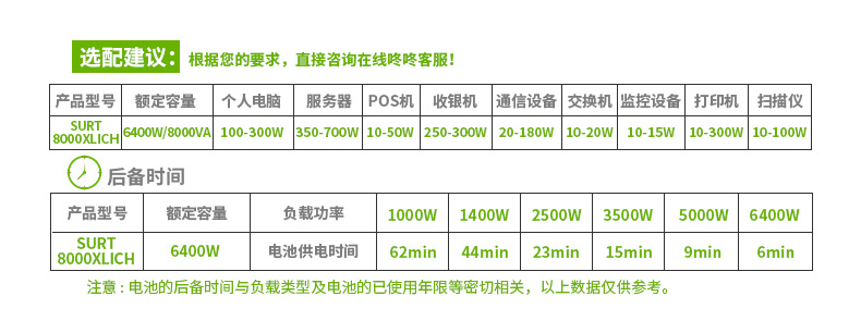 | 电池类型 | 免维护密封铅酸电池(悬浮电解液):防漏 | 可选用电池 | APC-Smart-UPS-RC-8000VA-230V |