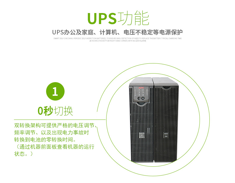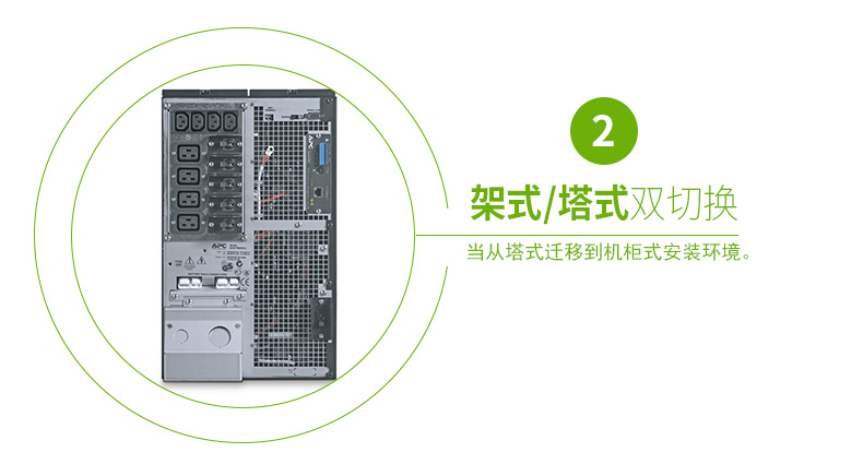 持续保护设备和数据:网络级电源调节功能可防止浪涌的危害和破坏性的噪音。双转换架构可提供严格的电压调节、频率调节、以及出现电力事故时转换到电池的零转换时间。