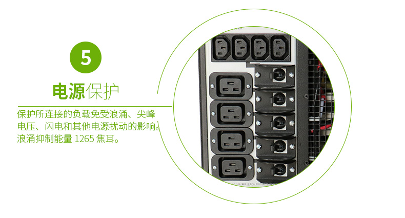 电源调节:保护所连接的负载免受浪涌、尖峰电压、闪电和其他电源扰动的影响。
