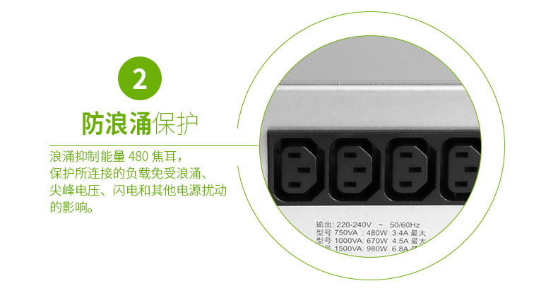 电源调节:保护所连接的负载免受浪涌、尖峰电压、闪电和其他电源扰动的影响。