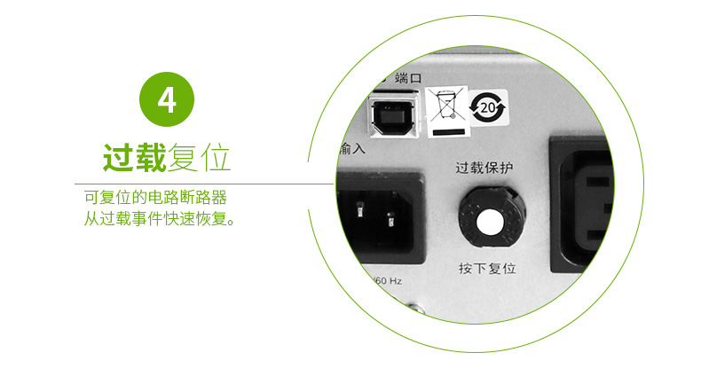 经UPS关机后自动重启负载:一旦市电恢复,则自动重新启动所连接的设备。