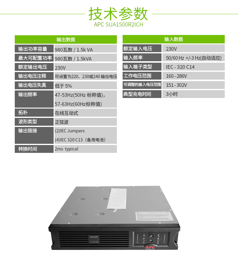 APC SUA1500R2ICH不间断UPS电源适用于UPS办公及家庭计算机电源保护。