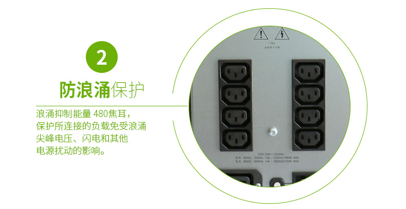 电源调节:保护所连接的负载免受浪涌、尖峰电压、闪电和其他电源扰动的影响。