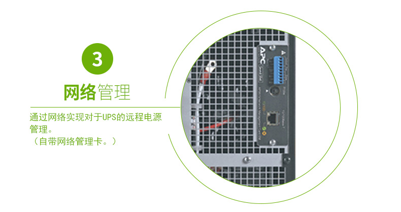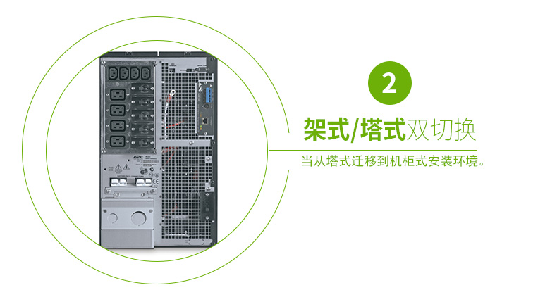 持续保护设备和数据:网络级电源调节功能可防止浪涌的危害和破坏性的噪音。双转换架构可提供严格的电压调节、频率调节、以及出现电力事故时转换到电池的零转换时间。