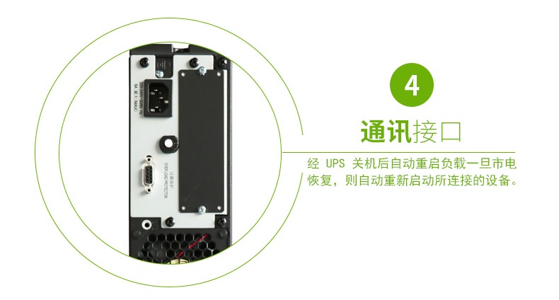 经 UPS 关机后自动重启负载:一旦市电恢复,则自动重新启动所连接的设备。