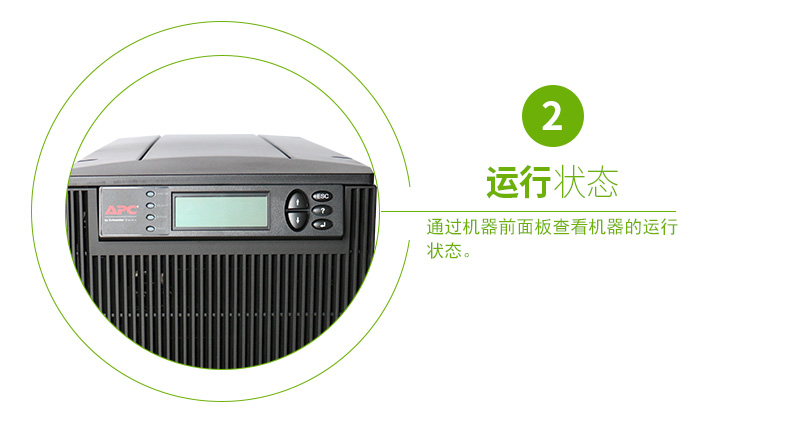 低运行维护成本和可靠的智能电池管理:由APC公司首创的智能电池管理可通过智能化、精确的温度补偿充电来最大限度地提高电池的性能并延长其寿命。自动自检确保了电池的可靠性并可在更换电池前向用户发出警告。方便、易于连接、可热插拔的电池模块使得无需断电就能进行电池更换。