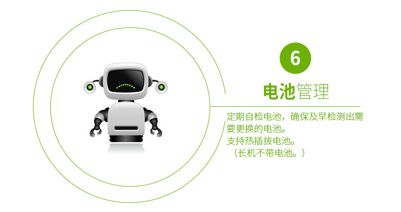 热插拔电池:在更换电池的整个过程中,确保干净、不间断电源以保护设备。