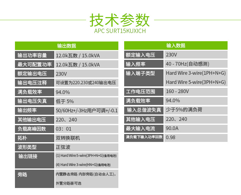 APC SURT15KUXICH 在线式UPS不间断电源适用范围: