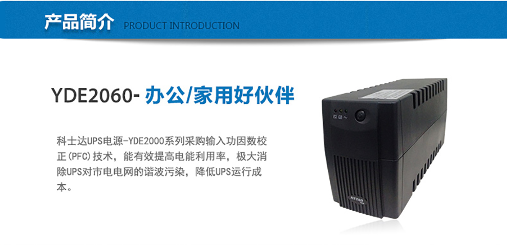 科士达kstar YDE2060是集交流稳压、后备电源、尖峰浪涌吸收等多功能为一体的UPS,具有体积小、功能全、效率高、性能可靠、使用方便等特点。