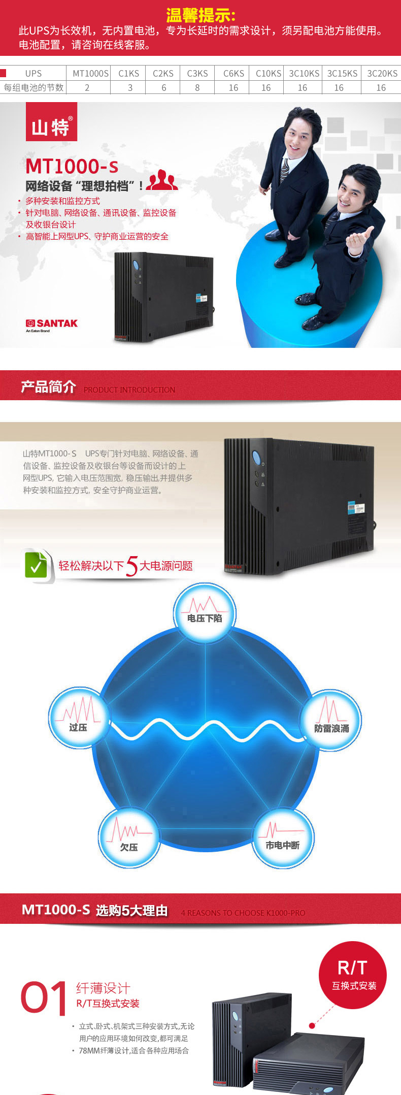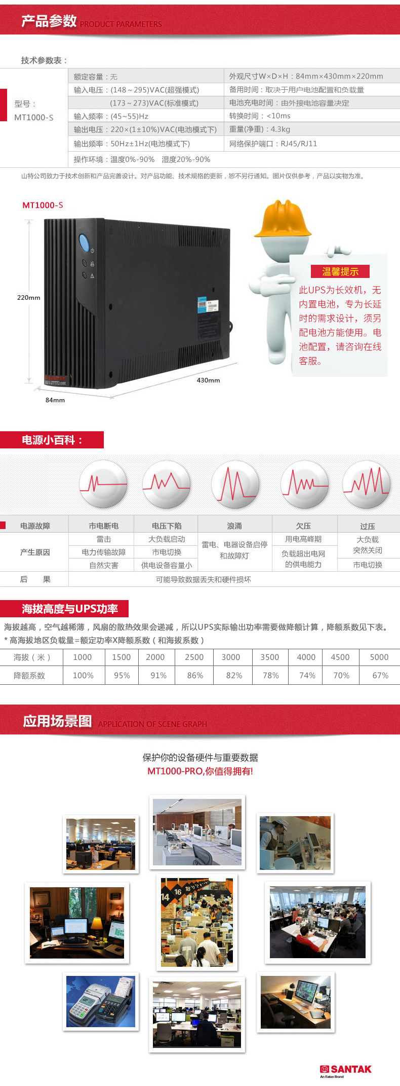 山特MT1000-s 1000VA/600W ups不间断电源 长效机后备式