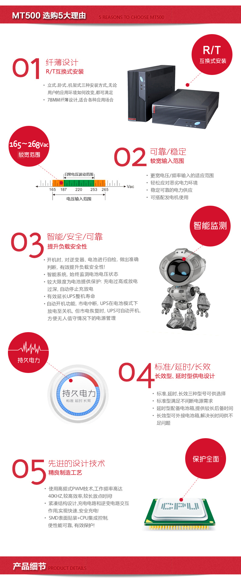 为了满足不同用户对UPS后备时间需求, MT系列分为三种型号:标准型、延时型和长效型。