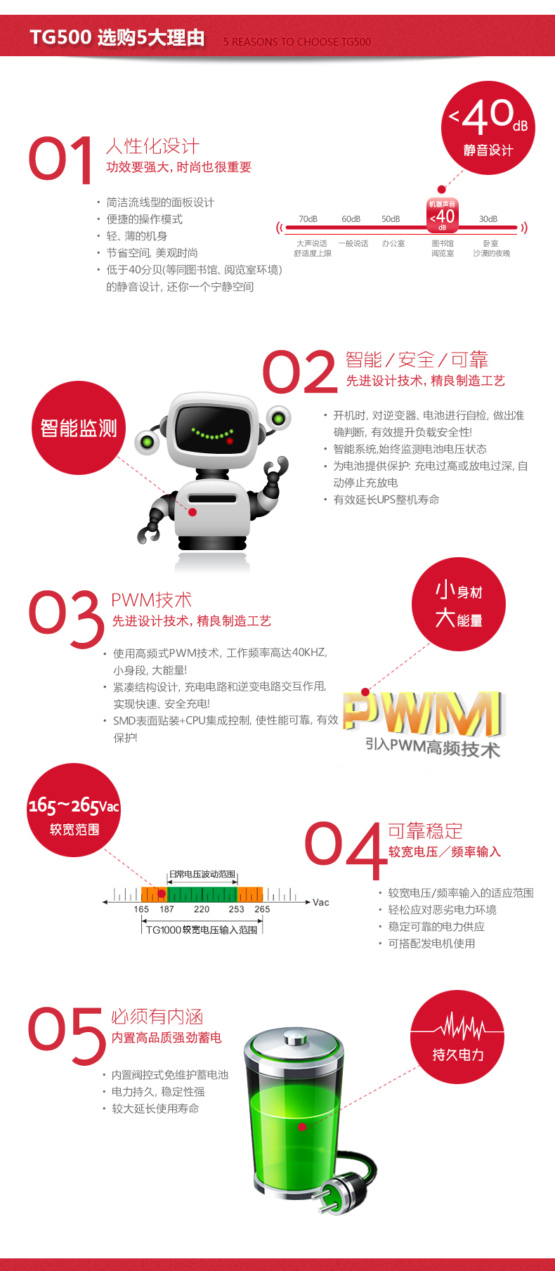 采用内置高晶质阀控式免维护铅酸蓄电池 ,电力持久、稳定,有效提高UPS 的使用可靠性。